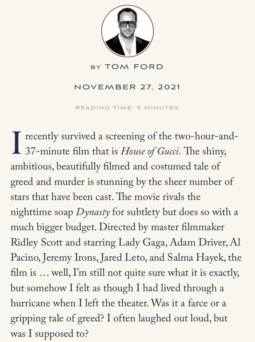 Kanika Talwar On Twitter Tom Ford S Review Of House Of Gucci Https T Co Hjiryrkoub Twitter